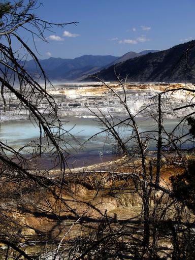 Keywords: blue pond mineral sulfur volcanic yellow stone national park landscape wyoming usa scenery tourist attraction nature
