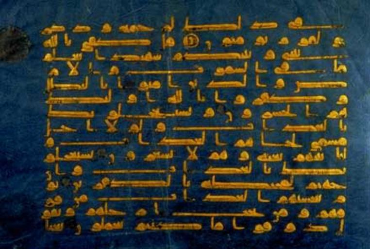 | Keywords: Blue quran onepage.jpg صورة للمصحف الازرق، نسخة المخطوطة من متحب القرأن بالبحرين Beit Al Quran Bahrain http //www islamic-awareness org/Quran/Text/Mss/blue html Unknow calligrapher Late ninth or early tenth century CE c 300 AH PD-Art Blue Qur'an |