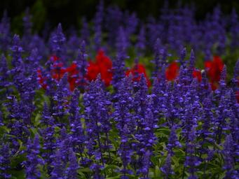 Keywords: blue sage flowers blue-violet red leaf green gregariousness flower bed lot otsu park yokosuka japan