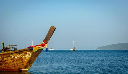Keywords: blue sea ocean water cliff ocean view beautiful mountain hill green thailand island background beach colorful sun sky tree travel summer holiday tourism outdoor landscape boat longtail boat longtail natural oriental tropical azure