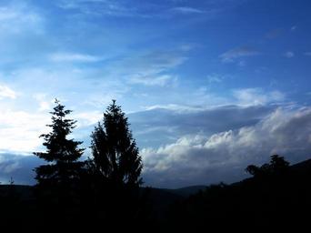 Keywords: blue sky back light trees clouds dramatic clouds scenic