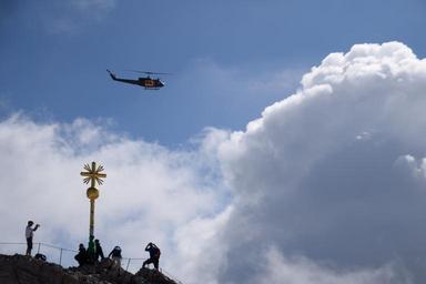 Keywords: blue sky mountain landscape zugspitze helicopter approach