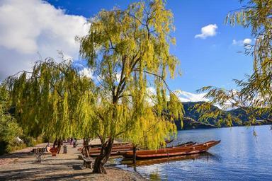 Keywords: blue sky white cloud mountain the scenery in yunnan province water ship tree