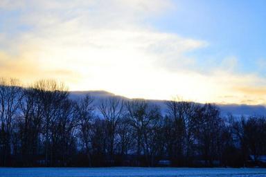 Keywords: blue sunbeam dazzle clouds sky morning sun in the early morning nature winter trees tree silhouette back light mood glow sunrise
