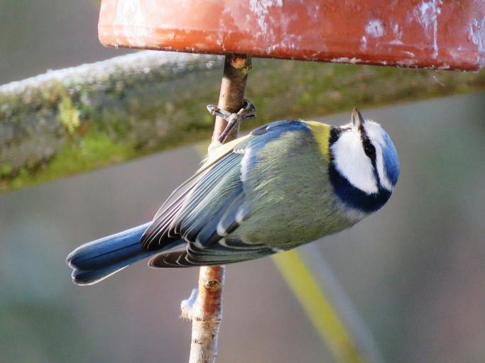 Keywords: blue tit bird tit garden nature feeding foraging songbird