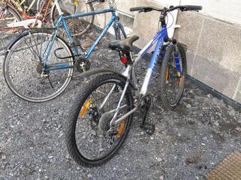 Keywords: Blue Trek parked.JPG en A blue Trek junior mountain bike at a Finnish yard fi Trek-merkkinen nuorisokokoa oleva maastopyörä Own SeppVei 2009-09-26 Mountain bikes Parked bicycles Taken with Canon PowerShot A590 IS