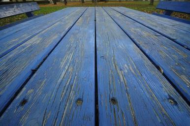 Keywords: blue wood table old cracked garden garden bench cracks structure perspective colorful color deleted lacquered scratch gap inn weathered