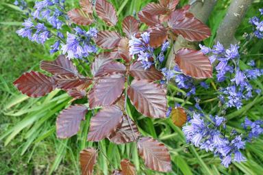Keywords: bluebells bluebell flower flowers red oak leaves garden flower garden spring nature blue brown season