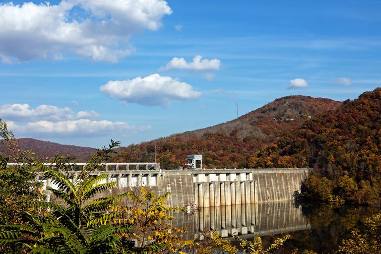 Keywords: bluestone west virginia dam power energy mountains autumn fall forest trees woods sky clouds architecture landmark