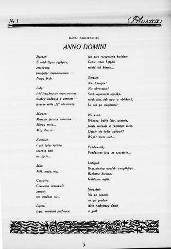 | Keywords: Bluszcz rok LXII nr 1, 5 stycznia 1929 p05.jpg pl skan z czasopisma PL 1929 http //www wbc poznan pl/dlibra/publication id 90510 from dirids 1 tab 1 lp 1 QI 1A924FBA1EA9510E98FAB93D43665DA6-1 WBC Maria Pawlikowska-Jasnorzewska 1891-1945 other versions Custom license marker 2016 01 02 PD-old-auto-1996 1945 Poems by Maria Pawlikowska-Jasnorzewska published in 'Bluszcz' magazine Uploaded with UploadWizard | ||||