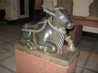 | Keywords: BLW Nandi, Siva's Sacred Bull.jpg Nandi Siva's Sacred Bull<br /> Granite<br /> Southern Deccan<br /> Late 16th - early 17th century<br /> <br /> In a Hindu temple dedicated to the worship of Siva the presence of the bull-calf Nandi is essential Nandi is Siva's vahana or sacred vehicle and is traditionally positioned in the temple courtyard facing directly in the central sanctuary which houses the principal Siva image the linga The Sanskrit word nandi means 'joy' and refers to the emotions experienced by a devotee in the presence of Lord Siva Rosie Summers Victoria and Albert Museum http //www vam ac uk/ IS 73-1990 http //collections vam ac uk/item/O24787/sculpture-nandi/ PD Britain Loves Wikipedia images to categorize Sculptures of India in the Victoria and Albert Museum Nandi sculptures in the Victoria and Albert Museum |