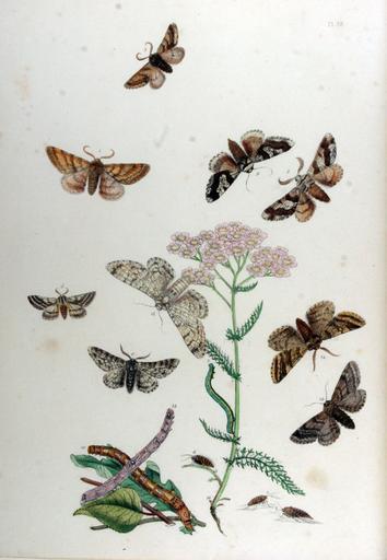| Keywords: BMAT.II-58.jpg en Achillea millefolium Phigalia pilosaria; Nyssia bispidaria; Nyssia zonaria; Biston prodromarius; Biston betularius; Biston hirtarius Plate 58 1845 British Moths and their Transformations Volume II 1845 http //caliban mpiz-koeln mpg de/westwood/moths2/high/IMG_3873 html Henry Noel Humphreys and John Obadiah Westwood PD-old Uploaded with UploadWizard British Moths and their Transformations Volume II | ||||
