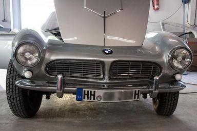 Keywords: bmw 507 engine compartment two seater roadster sports car design albrecht count of goertz designer icon of automotive design repair workshop recovery new paint job bmw logo open engine compartment cover cool hood noble valuable