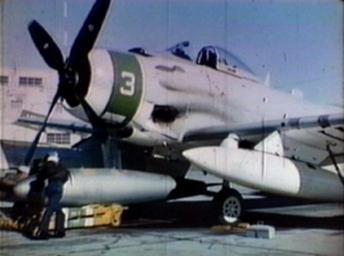 | Keywords: BOAR loading on AD-7.png en BOAR BOmbardment Aerial Rocket unguided nuclear rocket being loaded on Douglas AD-7 Skyraider BuNo 142015 of VX-5 at NOTS China Lake Still from Secret City video U S Navy photo via http //www chinalakealumni org/1957 htm author 1957 U S Navy photograph PD-USGov-Military-Navy BOAR Bombardment Aerial Rocket AD-7 A-1J Skyraider Air Test and Evaluation Squadron 5 United States Navy Naval Air Weapons Station China Lake Still images from videos | ||||