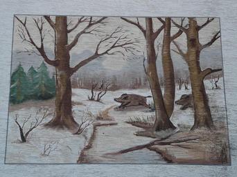 Keywords: boar painting wild boar hunting image artwork drawing forest hunting nature