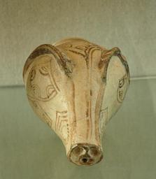 | Keywords: Boar rhyton Louvre AO18521.jpg Boar rhyton Mycenaean ceramic imported by Ugarit Found in the acropolis of Ras Shamra Rhyton en forme de tête de sanglier Céramique mycénienne importée par Ugarit Provenance acropole de Ras Shamra ca 1300 1100 BC ceramic Institution Louvre object department Near Eastern antiquities room ID 128 21628 object history credit line ProvenanceEvent excavated Claude Schaeffer 1935 accession number Louvre number 18521 own photo date 2006 Marie-Lan Nguyen artwork license PD-old-100 photo license other versions Mycenaean pottery Ancient Greek pottery rhyta Ugarit Near Eastern Antiquities in the Louvre - Room B Boars in ancient Greek pottery Boar heads in art Mycenaean Rhyta |
