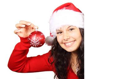 Keywords: board christmas claus female bauble girl happy hat present pretty red santa smile white woman xmas young
