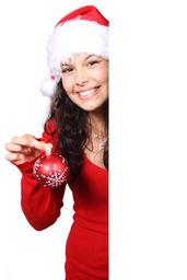 Keywords: board christmas claus female bauble girl happy hat pretty red santa smile white woman xmas young