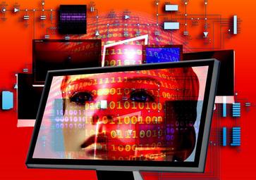Keywords: board face binary technology monitor think display dummy human circuits microprocessor mode controlled doll artificial intelligence function printed circuit board digital intelligent futuristic head portrait computer science