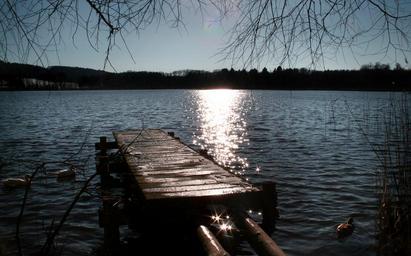 Keywords: boardwalk sunset lake burgäschisee water dock waters jetty spring duck mood silent idyllic sun web quiet bank landscape