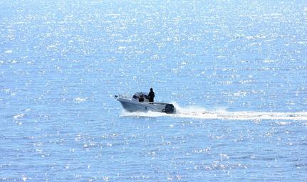 Keywords: boat ocean water surface reflections sunshine blue sea speed motor boat light