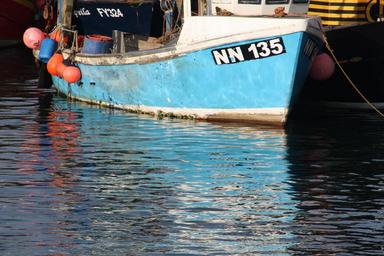 Keywords: boat reflection hull water harbor dock colorful ship peaceful serene