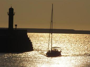 Keywords: boat sailboat harbor lighthouse sunset sea