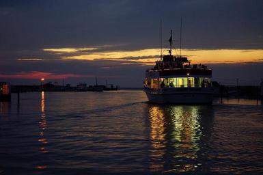 Keywords: boat ship sunset illuminated lake water cruise reflection transport tourism