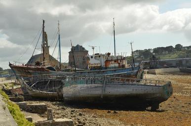 Keywords: boat ship wreck ship wreck ship graveyard expired rust tower tour vauban city village camaret-sur-mer brittany france