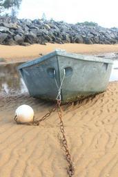 Keywords: boat sunrise water outdoor sea sky clouds ocean horizon sand beach