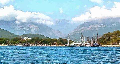 Keywords: boat trip sea island seascape journey rock vacation summer walks on the sea blue turkey tourism rocks clear sea landscape stones beach water the mediterranean sea sky stroll sun blue sky sunny the bright sun light clouds yacht ship