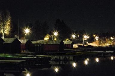 Keywords: boathouse darkness night light lighting evening lights water autumn