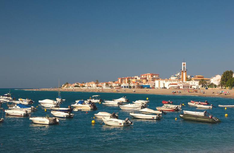 Keywords: beach ocean Calahonda Alboran sea Granada province Spain boat ship town
