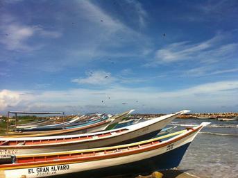 Keywords: boats margarita island blue sky sea clouds beach sky blue calm water landscape nature costa holiday landscapes