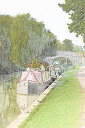 Keywords: boat boats houseboat ship river canal trees beautiful art illustration sketch drawing scene colorful