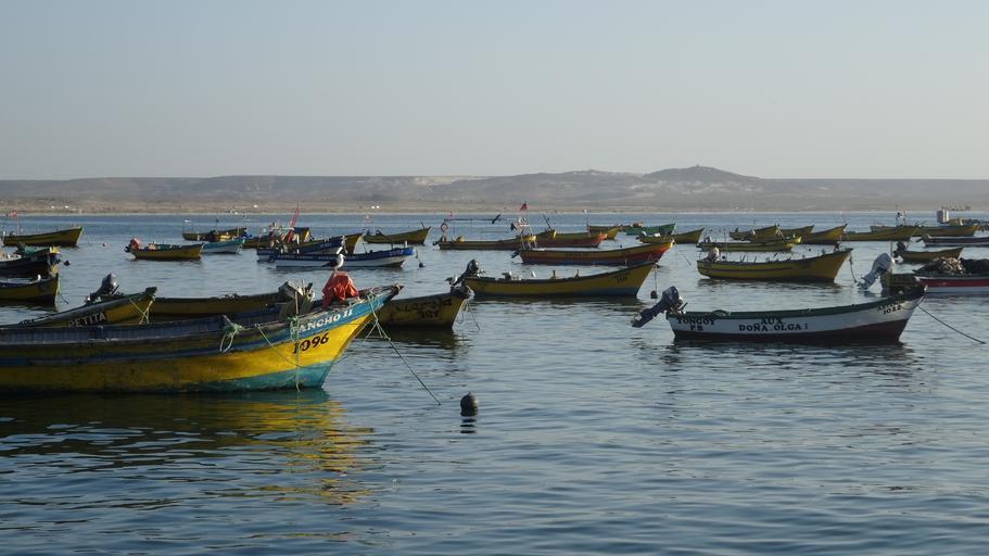 Keywords: boats sea water sky fishing boat ocean bay spring chile blue beach calm landscape