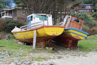 Keywords: boats stranded southern chile picturesque sea cove fishermen