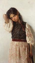 | Keywords: Bodarevsky 015.jpg <nowiki>Вставьте сюда текст кото ый не нужно фо мати овать</nowiki> Artwork Creator Nicholas Bodarevsky ru Девочка из ало оссии 1892 oil canvas cm 97 57 Private collection accession number object history credit line http //www iskusstvo-info ru/2005/6/05_36_41 htm PD-old-70 Nikolai Kornilievich Bodarevsky Girls from Ukraine in art Hair in art Body language Neutral background Sleeves Standing girls Girls looking at viewer People leaning against walls Portraits of Ukrainian peasant women Children of Ukraine in art Clothing of Dnieper Ukraine Vyshyvanka in art |