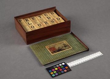 | Keywords: Bodleian Libraries, Alphabetical dominoes.jpg Game entitled Alphabetical dominoes; leaflet has advertisement for Letters and short words or Alphabetical dominoes on wood varnished in large chestnut box 125 dominoes 5s 250 dominoes 7s6d Also has advertisements for many other games published by D Ogilvy Dominoes are double-sided most with letters and words not matching on each dominoe e g B Sconce scoop scourge score scrawl recto F dream dress drift drill drink verso Some dominoes have two letters on one face or two sets of words Contains 124 dominoes 1 missing Rules on verso of lid Advertisement folded has much surface dirt; Letters and short words or Alphabetical dominoes; Arithmetical dominoes advertised game ; Biographical dominoes advertised game ; Geographical dominoes advertised game ; Historical dominoes advertised game ; Scientific dominoes advertised game ; Geographical charades advertised game ; Natural history charades advertised game ; Biographical charades advertised game ; Scientific charades advertised game ; Historical charades advertised game ; Ancient history charades advertised game ; Quartette games advertised games ; Characters from English humourists advertised game ; Poetic gems advertised game ; Characters from Shakespeare advertised game ; Sparkles of wit advertised game ; Image 2 box 124 pieces; 148 x 221 x 61 mm exhibition history Allegro identifier 20040901/11 18 45 jl object history object type Licensed-PD-Art PD-old-100 cc-by-4 0 place of creation London England D Ogilvy place of discovery http //digital bodleian ox ac uk/inquire/p//9258f0f5-c5a3-43a2-8f8b-01f497da70e9 Digital Bodleian Template John Johnson Alphabetical dominoes Uploaded with GWToolset Bodleian Libraries Alphabetical dominoes http //iiif bodleian ox ac uk/iiif/image/7348ce3a-4441-469a-9320-5b40cde911f2/full/ 1000 1000/0/default jpg Files uploaded by the Bodleian Libraries' Wikimedian In Residence Dominoes Alphabets Spelling games Educational games Children playing Toys |