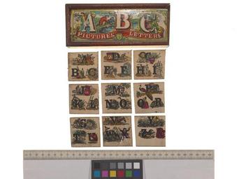 | Keywords: Bodleian Libraries, A B C pictures and letters.jpg Game entitled A B C pictures and letters; Has nine blocks each except last with 3 letters Blocks have images on one side and words as above but in sixes on other Images do not all correspond to the words Wooden box Box of Johnson copy is damaged; Apple Anchor; Bat Ball; Cage Chain; Drum Dog; Earth Eagle; Fountain Fish; Globe Goose; House Horse; Inn Ink; Jug Jury; King Key; Lord Love; Monkey Mouse; Nest Nettle; Owl Own; Peacock Pear; Quite Queen; Rabbit Rattle; Sailor Ship; Turtle Truth; Uncle Urn; Vulture Voice Vain; Whale Water; Zany; Yacth sic Youth; Zero Zebra; Image 3 box 9 blocks; 66 x 165 x 33 mm exhibition history Allegro identifier 20040831/14 15 30 jl object history object type Licensed-PD-Art PD-old-100 cc-by-4 0 place of creation place of discovery http //digital bodleian ox ac uk/inquire/p//afadb78d-ee30-4385-8247-f15c44a15708 Digital Bodleian Template John Johnson A B C pictures and letters Uploaded with GWToolset Bodleian Libraries A B C pictures and letters http //iiif bodleian ox ac uk/iiif/image/52edf2e9-fadd-4a74-92f2-b5aaff99e403/full/ 1000 1000/0/default jpg Files uploaded by the Bodleian Libraries' Wikimedian In Residence Illustrated alphabets Spelling games Educational games Alphabet books |