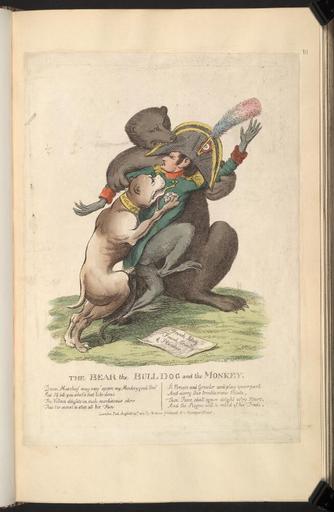 | Keywords: Bodleian Libraries, The bear the bull dog and the monkey.jpg accession number Curzon b 28 111 Satire on the Napoleonic wars British political cartoon 358 x 250 platemark mm exhibition history Source filename politi004-azd-0001-0 object history object type Licensed-PD-Art PD-old-100 cc-by-4 0 place of creation London England William Holland place of discovery http //digital bodleian ox ac uk/inquire/p//0b67399f-ffbd-4f7a-9c24-33939cd76fbb Digital Bodleian Template Bodleian Libraries The bear the bull dog and the monkey Uploaded with GWToolset Bodleian Libraries The bear the bull dog and the monkey http //iiif bodleian ox ac uk/iiif/image/0b67399f-ffbd-4f7a-9c24-33939cd76fbb/full/ 1000 1000/0/default jpg Files uploaded by the Bodleian Libraries' Wikimedian In Residence Russian campaigns of the Napoleonic Wars Caricatures of Napoleon I of France Arthur Wellesley 1st Duke of Wellington Animals in art Curzon Collection |