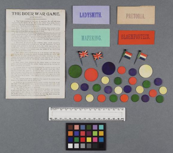 | Keywords: Bodleian Libraries, The Globe series of games.jpg Game entitled The Boer War game; has advertising booklet in lid The Globe series of games The public are requested to ask for the Globe series of games which will be found superior to all other makes and can be obtained at all Toy and fancy dealers Booklet 24 pp includes Rules for the game Up to Klondyke Has counters paper flags rules and four differently coloured cards Praetoria Bloemfontein Ladysmith and Mafeking Johnson copy has been conserved Foam blocks in place to contain loose elements; Image 2 box 24p 1p 4 slips 4 flags 4 large counters 24 small counters; 95 x 118 x 38 mm exhibition history Allegro identifier 20030922/12 36 05 jl object history object type Licensed-PD-Art PD-old-100 cc-by-4 0 place of creation London England The Games Co place of discovery http //digital bodleian ox ac uk/inquire/p//45eeac52-3dd2-49b3-a22f-c37ed99aca53 Digital Bodleian Template John Johnson Boer War game-The Globe series of games Uploaded with GWToolset Bodleian Libraries The Globe series of games http //iiif bodleian ox ac uk/iiif/image/7d065c12-4e57-4157-827d-8bf4529b7a28/full/ 1000 1000/0/default jpg Files uploaded by the Bodleian Libraries' Wikimedian In Residence War games South African War 1899-1902 |