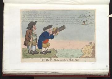 | Keywords: Bodleian Libraries, Iohn Bull shooting flying.jpg Satire on the fear of French invasion 1794-1805 British political cartoon 230 x 330 image and text mm exhibition history Source filename politi004-amg-0001-0 object history object type Licensed-PD-Art PD-old-100 cc-by-4 0 place of creation London England Roberts place of discovery http //digital bodleian ox ac uk/inquire/p//eb09728f-b4cd-4014-9077-17a964400764 Digital Bodleian Template Bodleian Libraries Iohn Bull shooting flying Uploaded with GWToolset Bodleian Libraries Iohn Bull shooting flying http //iiif bodleian ox ac uk/iiif/image/eb09728f-b4cd-4014-9077-17a964400764/full/ 1000 1000/0/default jpg Files uploaded by the Bodleian Libraries' Wikimedian In Residence Napoleonic Wars John Bull Curzon Collection |