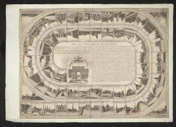 | Keywords: Bodleian Libraries, Jeu du voyageur en Europe. Représentant les vues des plus beaux édifices des principales villes de cette partie du monde.jpg Game entitled Jeu du voyageur en Europe Représentant les vues des plus beaux édifices des principales villes de cette partie du monde; Regles du Jeu; Russie Le palais Impériale de St Petersbourg 1 ; Hongrie Le chateau de Dresbourg 2 ; Suède Le palais du Roi à Stokholm 3 ; Pologne Le Palais de Varsovie 4 ; Russie La cathédrale de Moscou 5 ; Angleterre Le pont de Westminster à Londres 6 ; Prusse Le palais de roi à Berlin 7 ; Prusse Le Palais Royal de Koenigsberg 8 ; Danemark L'Eglise St Pierre de Copenhague 9 ; France Le port de Marseille 10 ; Westphalie Le palais du roi à Cassel 11 ; Bavière La maison des Jésuites à Munich 12 ; Irlande La maison de Change à Dublin 13 ; Prusse La cathédrale de Dantzick 14 ; France Le port de Bordeaux 15 ; Espagne La place Majoure à Madrid 16 ; France Le palais impérial de Bruxelles 17 ; Ecosse La cathédrale d'Édimbourg 18 ; France La Bourse de la ville de Lyon 19 ; France La place St Charles à Turin 20 ; France Le palais Doria à Génes sic 21 ; France L'Arsenal de Venise 22 ; France l'Eglise St Pierre de Rome 23 ; Sardaigne Le palais Royal à Cagliari 24 ; France Le port d'Anvers 25 ; Italie l'Amphithéatre de Véronne 26 ; France L'Eglise St Marc à Venise 27 ; Bohème La maison de ville à Prague 28 ; France Le port de Brest 29 ; France L'Arsenal de Toulon 30 ; Espagne L'Aquéduc de Séville 31 ; France La Métropole de Rouen 32 ; France La Place de Perou à Montpellier 33 ; France L'Amphithéatre de Nismes 34 ; France La Bourse à Amsterdam 35 ; France La Cathédrale de Parme 36 ; France La Place Royale à Rheims 37 ; France La Place de la Pucelle d'Orléans 38 ; France Le port de la Rochelle 39 ; France Le port de Rochefort 40 ; Turquie La mosquée de Ste Sophie à Constantinople 41 ; Royme de Naples Le Palais du Roi à Naples 42 ; France Le palais à Aix la Chapelle 43 ; France Le Capitole de Toulouse 44 ; France La Cathédrale de Metz 45 ; France La Tour de Strasbourg 46 ; Portugal Le Palais ci-devant Royal à Lisbonne 47 ; Espagne Le port de Cadis 48 ; Espagne Le Palais Royal de St Ildéphonse 49 ; France La Cathédrale de Chartres 50 ; Espagne Le grand palais de Valladolid 51 ; France La citadelle de Lille 52 ; Italie Le forum Bonaparte à Milan 53 ; Italie La Cathédrale de Mantoue 54 ; Toscane Le Palais Pitti à Florence 55 ; Italie Le palais cidevant Ducal à Modene 56 ; Italie La Grande Place et as Fontaine à Sienne 57 ; Tombeau de la Reine de Dannemarck 58 ; Espagne Le Cathédrale de Tolède 59 ; France La Grande Place de Nancy 60 ; Sicile La fontaine sur la Place du Palais de Justice à Palerme 61 ; Sicile Le port de Messine 62 ; France Vue perspective du Palais Impérial des Tuileries prise de l'Arce de Triomphe des Champs Elisées à Paris 63 ; Vue perspective de la ville de Paris; Vue perspective de la ville de Londres; Vue perspective de la ville de Rome; Vue perspective de la ville de Constantinople; Jeu du voyageur en Europe Représentant les vues des plus beaux édifices des principales villes de cette partie du monde single sheet; 460 x 624 mm exhibition history 006892 object history object type Licensed-PD-Art PD-old-100 cc-by-4 0 place of creation place of discovery http //digital bodleian ox ac uk/inquire/p//58fc82c7-ed71-412d-8208-57883ba98802 Digital Bodleian Template John Johnson Jeu du voyageur en Europe Représentant les vues des plus beaux édifices des principales villes de cette partie du monde Uploaded with GWToolset Bodleian Libraries Jeu du voyageur en Europe Représentant les vues des plus beaux édifices des principales villes de cette partie du monde http //iiif bodleian ox ac uk/iiif/image/58fc82c7-ed71-412d-8208-57883ba98802/full/ 1000 1000/0/default jpg Files uploaded by the Bodleian Libraries' Wikimedian In Residence Game boards travel Europe in art |