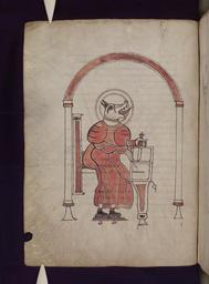 | Keywords: Bodleian Libraries, Latin Gospels 71v.jpg Latin Gospels with beast-headed evangelist portraits made at Landévennec Brittany late 9th or early 10th century supplemented in the 11th century with conventional portraits in the style of Northern France or Flanders; given by bishop Leofric d 1072 to Exeter Cathedral where lists of lands relics etc in Old English were incorporated at the start ; 71v exhibition history goobi PPNanalog SC 2719 object history object type Licensed-PD-Art PD-old-100 cc-by-4 0 place of creation place of discovery http //digital bodleian ox ac uk/inquire/p//e70df7dc-1f08-4482-bb6d-42ebe9ec55f2 Digital Bodleian Template Bodleian Libraries Latin Gospels Uploaded with GWToolset Bodleian Libraries Latin Gospels 71v http //iiif bodleian ox ac uk/iiif/image/eacaf8bb-d813-4fec-8819-06c944b117ef/full/ 1000 1000/0/default jpg Files uploaded by the Bodleian Libraries' Wikimedian In Residence Gospels from Landévennec - Bodleian Lib MS Auct D 2 16 Medieval miniatures of Evangelists |