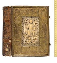 | Keywords: Bodleian Libraries, Manuscript of the first two Gospels only Matthew and John.jpg Ivory plaque set in engraved metal Flemish and/or German early to mid 11th century The ivory attributed to Liège in the early 11th century shows Christ in triumph over personifications of Earth and damaged Ocean with symbols of the four Evangelists; it may be somewhat earlier than the engraved gilt metal plate which fixes it to the thick wooden board of the front cover The manuscript inside has been attributed to the German scriptorium of Lorsch towards the mid 11th century However the metalwork directly fits it since the angel engraved at the lower border echoes an illumination within The four Evangelists in human form are engraved at the corners and at left and right are a saintly bishop and a young ruler probably Henry IV crowned king of Germany 1054 acceded 1056 who receives his crown from above and offers or takes a book perhaps this one maybe a coronation book exhibition history Spine and front board source filename oulis2009-atb-0011-0 tif object history object type Licensed-PD-Art PD-old-100 cc-by-4 0 place of creation place of discovery http //digital bodleian ox ac uk/inquire/p//c0e426f3-5523-4fbf-93c3-ca418e59c7f2 Digital Bodleian Template Bodleian Libraries Manuscript of the first two Gospels only - Matthew and John Uploaded with GWToolset Bodleian Libraries Manuscript of the first two Gospels only Matthew and John http //iiif bodleian ox ac uk/iiif/image/c0e426f3-5523-4fbf-93c3-ca418e59c7f2/full/ 1000 1000/0/default jpg Files uploaded by the Bodleian Libraries' Wikimedian In Residence Bookbinding |