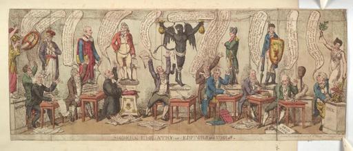 | Keywords: Bodleian Libraries, Modern idolatry or - editors and idols.jpg Satire on Napoleon's exile to Elba British political cartoon 209 x 524 sheet mm exhibition history Source filename politi004-bca-0001-0 object history object type Licensed-PD-Art PD-old-100 cc-by-4 0 place of creation London England W N Jones place of discovery http //digital bodleian ox ac uk/inquire/p//a40c0223-5eef-49ad-86cb-a12d1ea1a57f Digital Bodleian Template Bodleian Libraries Modern idolatry -- or -- editors and idols Uploaded with GWToolset Bodleian Libraries Modern idolatry or editors and idols http //iiif bodleian ox ac uk/iiif/image/a40c0223-5eef-49ad-86cb-a12d1ea1a57f/full/ 1000 1000/0/default jpg Files uploaded by the Bodleian Libraries' Wikimedian In Residence Street Peter fl 1814 Byrne Nicholas fl 1814 Sterling Edward 1773-1847 Richard Wellesley 1st Marquess Wellesley Walter John 1739-1812 Stoddart John Sir 1773-1856 Robert Jenkinson 2nd Earl of Liverpool Dudley H Bate Henry Bate Sir 1745-1824 Caricatures of George IV of the United Kingdom Caricatures of Napoleon I of France Phillips Richard 1767-1840 Scott John 1784-1821 Francis Burdett William Cobbett Perry James 1756-1821 Newspapers The Devil Curzon Collection |