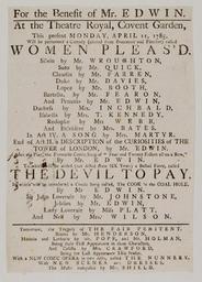 | Keywords: Bodleian Libraries, Playbill of Covent Garden, Monday, April 11, 1785, announcing Women pleas'd &c..jpg of the curiosities of the Tower of London; Four and twenty fidlers all on a row; Devil to pay; Cook in the coal hole; Fair penitent; Nunnery; Playbill of Covent Garden Monday April 11 1785 announcing Women pleas'd c single sheet; 232 x 164 mm exhibition history For the benefit of Mr Edwin Allegro identifier 20010704/14 21 31 af object history object type Licensed-PD-Art PD-old-100 cc-by-4 0 place of creation s l England s n place of discovery http //digital bodleian ox ac uk/inquire/p//65d7e237-c3a8-4080-90d0-c2fc468c7ea8 Digital Bodleian Template John Johnson Playbill of Covent Garden Monday April 11 1785 announcing Women pleas'd c Uploaded with GWToolset Bodleian Libraries Playbill of Covent Garden Monday April 11 1785 announcing Women pleas'd c http //iiif bodleian ox ac uk/iiif/image/65d7e237-c3a8-4080-90d0-c2fc468c7ea8/full/ 1000 1000/0/default jpg Files uploaded by the Bodleian Libraries' Wikimedian In Residence Playbills comedy Tower of London |