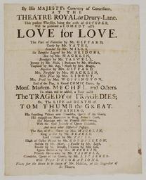 | Keywords: Bodleian Libraries, Playbill of Drury Lane Theatre, 10th of October 1745, announcing Love for love &c..jpg Playbill of Drury Lane Theatre 10th of October 1745 announcing Love for love c ; Love for love; Comic dance; Tragedy of tragedies or The life and death of Tom Thumb the great; Playbill of Drury Lane Theatre 10th of October 1745 announcing Love for love c single sheet; 234 x 187 mm exhibition history By his Majesty's company of comedians Allegro identifier 20011008/12 40 09 af object history object type Licensed-PD-Art PD-old-100 cc-by-4 0 place of creation s l England s n place of discovery http //digital bodleian ox ac uk/inquire/p//51c16dd3-b283-40d0-a425-21e761ea5daf Digital Bodleian Template John Johnson Playbill of Drury Lane Theatre 10th of October 1745 announcing Love for love c Uploaded with GWToolset Bodleian Libraries Playbill of Drury Lane Theatre 10th of October 1745 announcing Love for love c http //iiif bodleian ox ac uk/iiif/image/51c16dd3-b283-40d0-a425-21e761ea5daf/full/ 1000 1000/0/default jpg Files uploaded by the Bodleian Libraries' Wikimedian In Residence Playbills comedy |