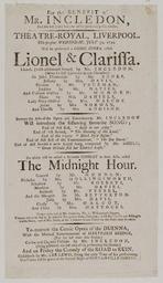 | Keywords: Bodleian Libraries, Playbill of Theatre Royal, Wednesday, July 30, 1794, announcing Lionel & Clarissa &c..jpg Playbill of Theatre Royal Wednesday July 30 1794 announcing Lionel Clarissa c for the benefit of Mr Incledon; Lionel Clarissa; Sally in our alley; Heaving of the lead; Black ey'd Susan; Sea storm; Great Britain still her charter boasts; Midnight hour; Duenna; Hartford Bridge; Road to ruin; Fontainville forest; Playbill of Theatre Royal Wednesday July 30 1794 announcing Lionel Clarissa c single sheet; 316 x 178 mm exhibition history For the benefit of Mr Incledon and the last time but one of his performing this season 011240 object history object type Licensed-PD-Art PD-old-100 cc-by-4 0 place of creation s l England s n place of discovery http //digital bodleian ox ac uk/inquire/p//2a47bc5a-1cb5-4ffb-9f6c-3472e96fd8f9 Digital Bodleian Template John Johnson Playbill of Theatre Royal Wednesday July 30 1794 announcing Lionel Clarissa c Uploaded with GWToolset Bodleian Libraries Playbill of Theatre Royal Wednesday July 30 1794 announcing Lionel Clarissa c http //iiif bodleian ox ac uk/iiif/image/2a47bc5a-1cb5-4ffb-9f6c-3472e96fd8f9/full/ 1000 1000/0/default jpg Files uploaded by the Bodleian Libraries' Wikimedian In Residence Playbills Operas comiques Theatres in Liverpool |